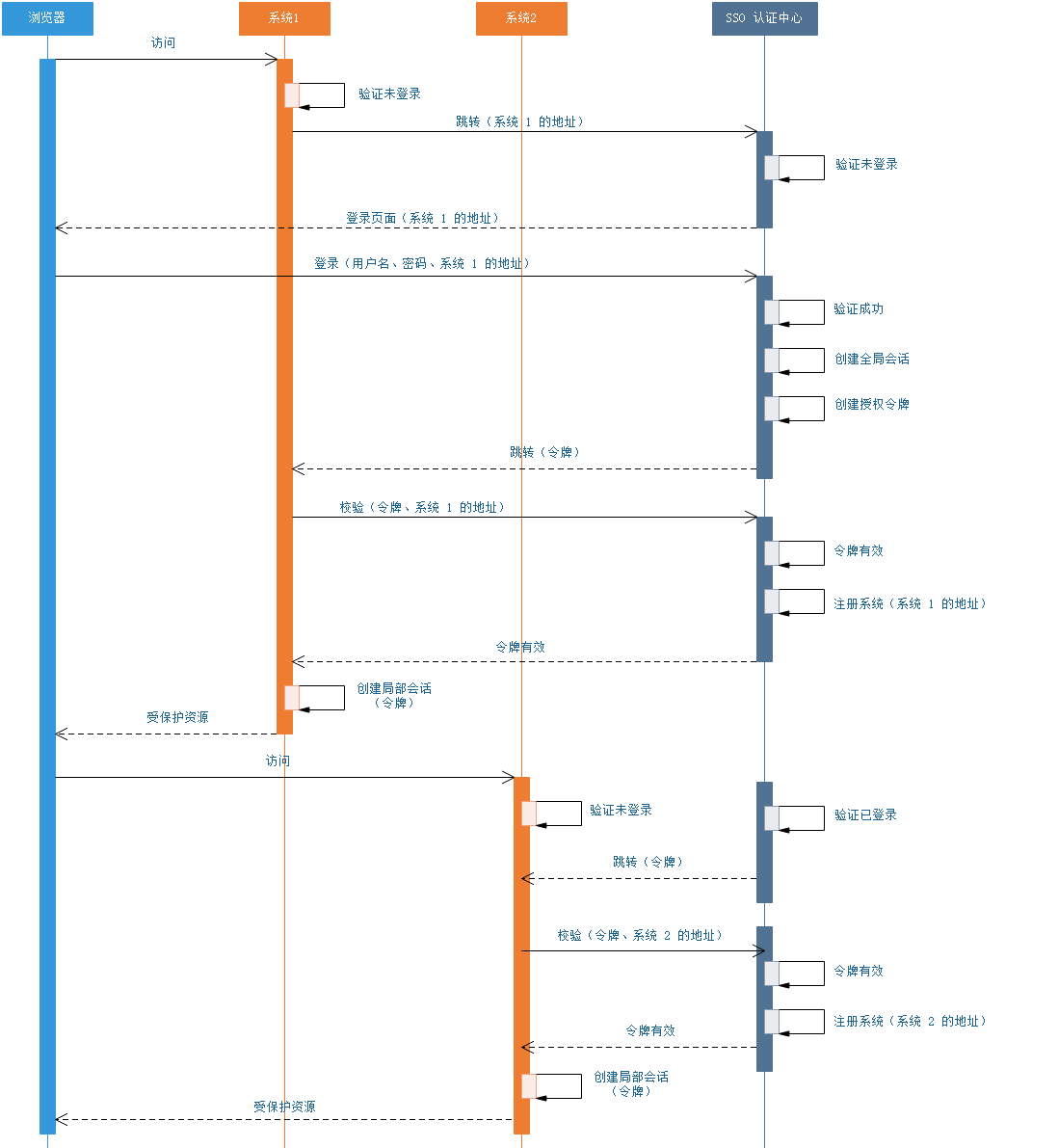 • sso 认证中心带着令牌跳转会最初的请求地址(系统1)