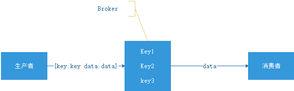 如上图所示,Broker 定义了三个队列,key1,key2,key3,生产者发送数据的时候会发送 key1 和 data,Broker 在推送数据的时候则推送 data(也可能把 key 带上)。