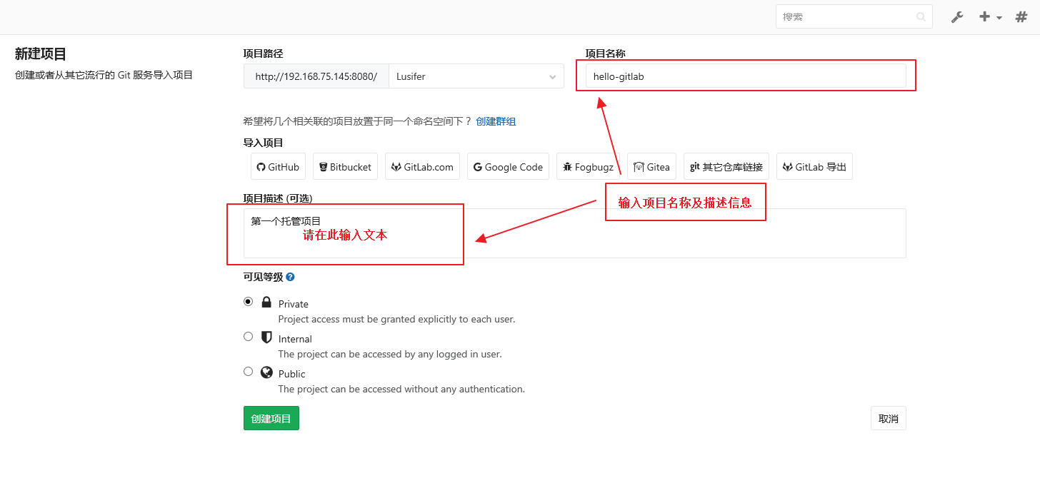 输入项目名称及描述信息,设置可见等级为私有,这样别人就看不见你的项目