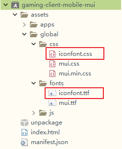 • 为保证和 mui 目录结构统一,建议将字体文件放在 fonts 目录下,这样我们需要修改 @font-face 下的 url 属性;